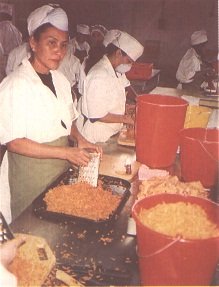 Distribución de la mezcla de mango y maracuyá en bandejas (G. Paltrinieri)