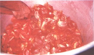 Calentamiento de la pulpa de papaya antes de agregar la pulpa de piña (G. Paltrinieri)