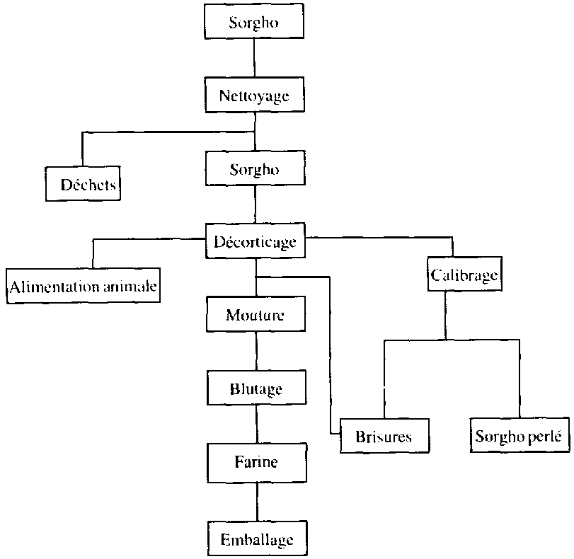 Ce travail avait pour objectif d'identifier des variétés de sorgho convenables et de développer des opérations unitaires comme le nettoyage des grains, le décorticage, la mouture, le blutage et le conditionnement. Ce développement constitue une amélioration des méthodes artisanales traditionnelles de mouture du fait qu'il permet d'obtenir en continu un meilleur rendement en farines de qualité constante utilisables pour la confection de produits traditionnels ou de farines composées.