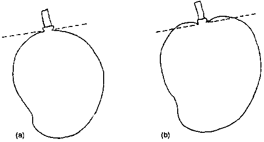 - la hauteur des «épaulements» du fruit par rapport au point d'attache du pédoncule; lorsque les épaulements dépassent ce point, le fruit est mûr (figure 39);