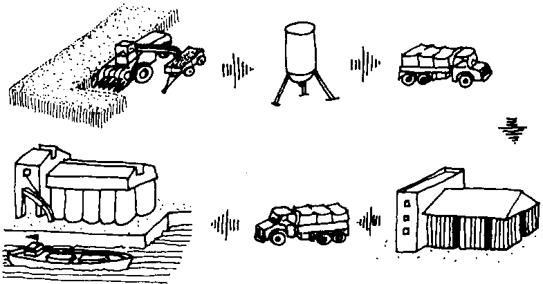 En cuanto al transporte en vehículos de carretera, los tractores con remolques se utilizan generalmente en el campo, mientras que en la carretera los productos se transportan en camiones de capacidad variable.