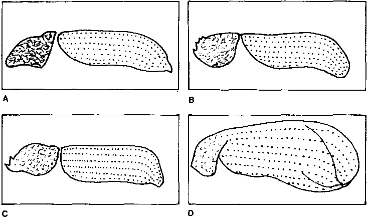 Figura 35. Adulto, larva, pupa y fémur posterior del gorgojo del frejol, A. obtectus (Say).