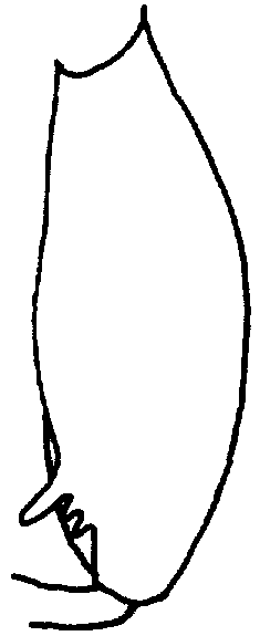 Otra característica de diferenciación la constituye la parte posterior de los élitros los cuales vistos lateralmente, son mas aplanados en D. minutas, un poco menos en P. truncatus, mientras que los de R. dominica son más bien redondeados. Los élitros de P. truncatus presentan una protuberancia en forma de costilla casi al final de los élitros. (Figura 33).
