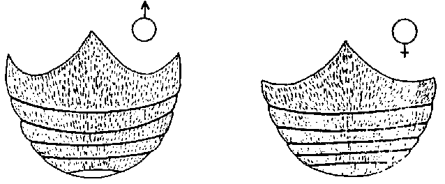 A simple vista es difícil distinguir la hembra del macho; una forma es mediante la observación al microscopio de sus órganos genitales; la otra por la configuración de los últimos segmentos abdominales. (Figura 36).