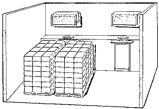 Figura 19. Enfriamiento de productos frescos mediante aire forzado (Dibujas reproducidos de Debney, H.G., et al., 1980)