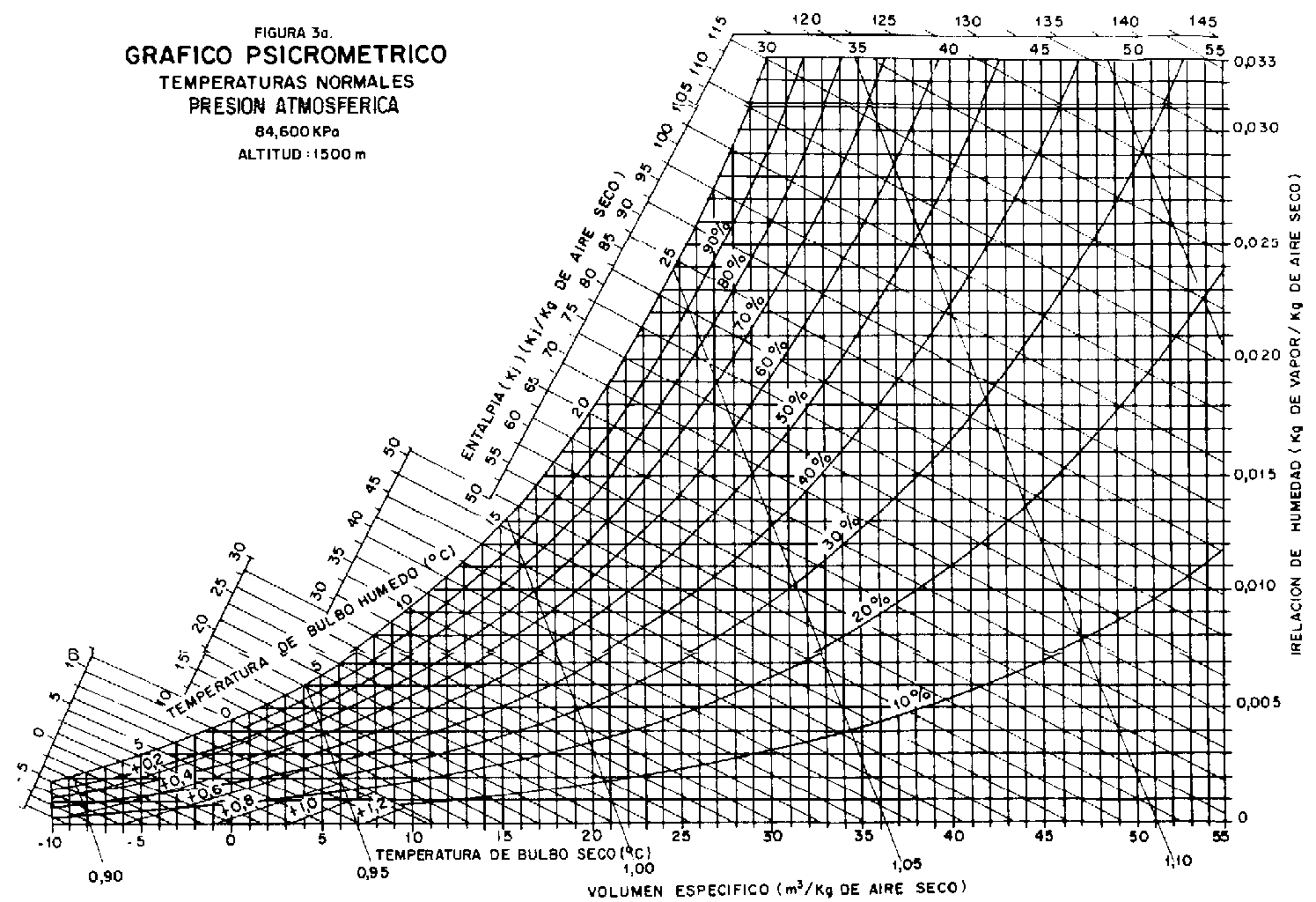 PSICROMETRICO, TEMPERATURAS NORMALES, PRESION ATMOSFERICA 84,600