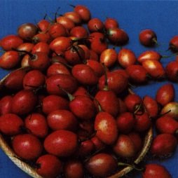 El color del fruto es determinado por la Iycopersicina y carolina, y el amarillo por la xantofila. El aroma está determinado por el contenido de ácidos etéreos. Contiene además caroteno o provitamina A.