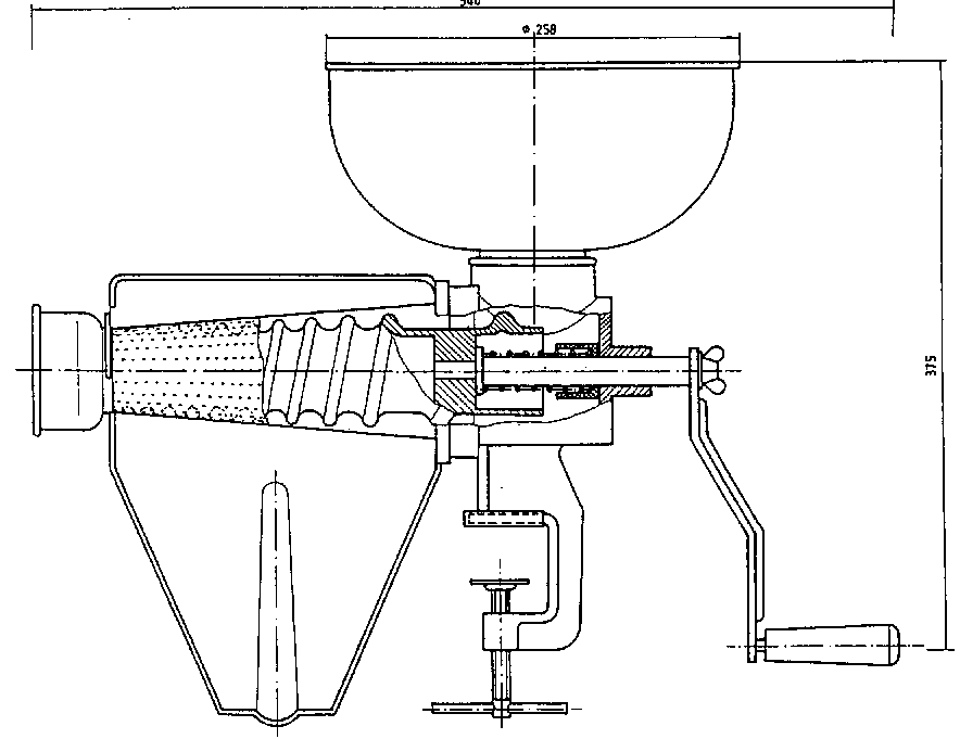 Para el buen funcionamiento del aparato, evitar girar la manija antes de haber llenado la tolva de alimentación con la materia prima.