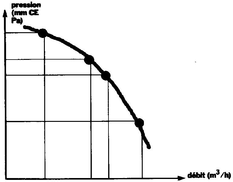 Le ventilateur qui met l'air en mouvement est caractérisé par une courbe débit-pression: plus la pression demandée augmente, plus son débit diminue, et inversement