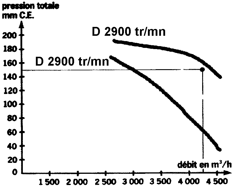Si le fournisseurs propose des ventilateurs à plusieurs régimes de rotation, faire tourner le ventilateur choisi au régime supérieure immédiatement au dessus du point souhaité.