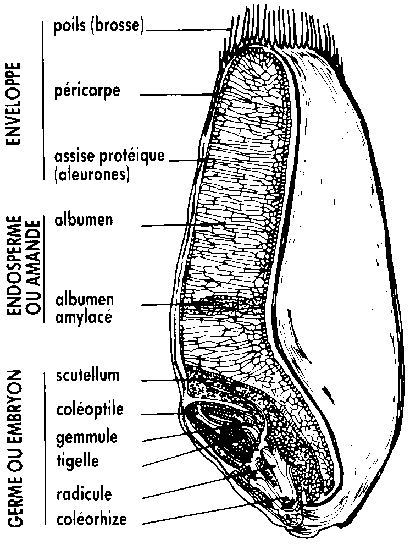Coupe longitudinale d'un grain de blé. (Doc. ITCF).