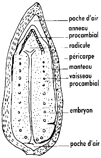 Coupe longitudinale d'un grain de tournesol. (Doc. CETIOM).