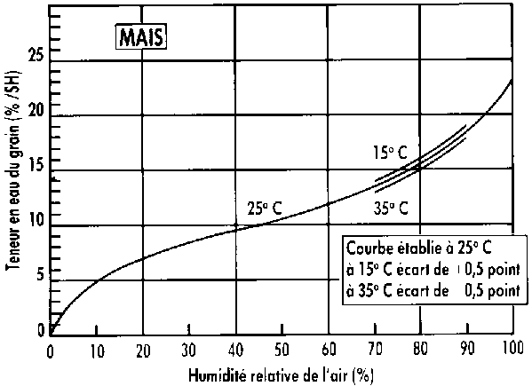 De nombreux travaux ont permis d'établir des courbes d'équilibre d'humidité air-grain, spécifiques à chaque espèce.