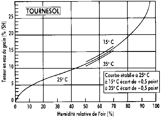 Courbe d'équilibre hygroscopique air-tournesol a 25 °C. (D'après CETIOM)