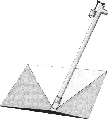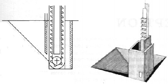 Quand le puits contenant l'élévateur doit être place à l'un des angles de la pyramide on a intérêt a prévoir une base carrée et la profondeur doit alors être égale à 1,10 fois le côte.