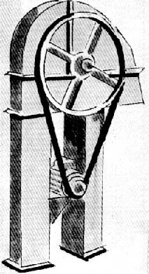 Entraînement moteur par poulies courroies d'un élévateur à godets (Doc. Denis).