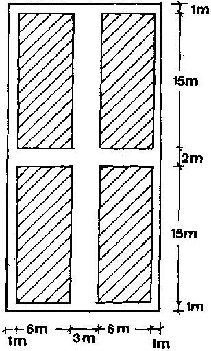 Largeur l = 1 m + 6 m + 3 m + 6 m + 1 m = 17 m