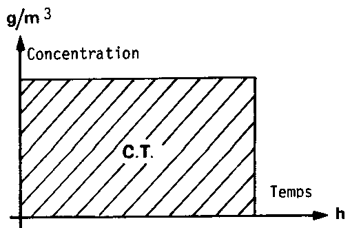Cette notion est essentielle pour bien mener la fumigation, Pour une espèce d'insecte donnée et pour une température donnée de la denrée, la donnée de base est la concentration effective en gaz et le temps pendant lequel elle agit. Le produit concentration x temps - appelé C.T. - est exprimé en mg x h/l (ou g x h/m³).
