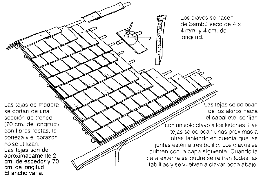 Tejas de Bambú fijadas con Astillas o Cuerdas (Bibl. 23.24)
