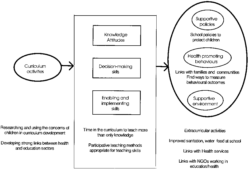 · establishing clear links between the health and education sectors centrally, which promote co-ordinated policy development and implementation· basing the health education curriculum on the health needs and concerns of school students