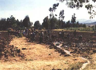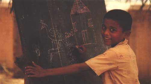 On several occasions, teachers stated that they had learned a lot from being involved in the research process, and would even use some of the methods developed to gather information in their own teaching. On two occasions when return visits were made to case study schools, innovative strategies were observed being put into practice; for example a class in India carrying out "free drawing" (Photo 1) and a group of pupils in Ethiopia creating a map of the village in the school garden using earth and sowing flower seeds (Photo 2). This suggests that the practice of some teachers may be influenced greatly by support and opportunities for professional development.