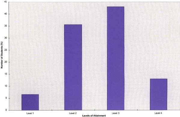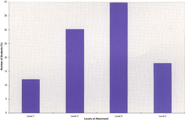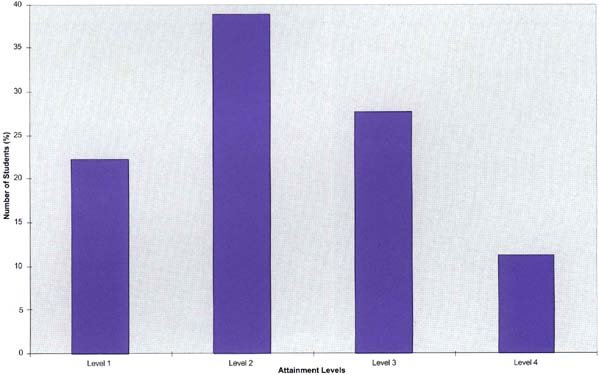 Figure 1 shows that 22 percent of children achieved Level 1. 38.8 percent of children achieved Level 2 while 27.7 percent achieved Level 3. Only 11.1 percent of children achieved Level 4.