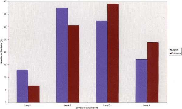 Figure 17 shows the profile of achievement for story writing in English and Chichewa.