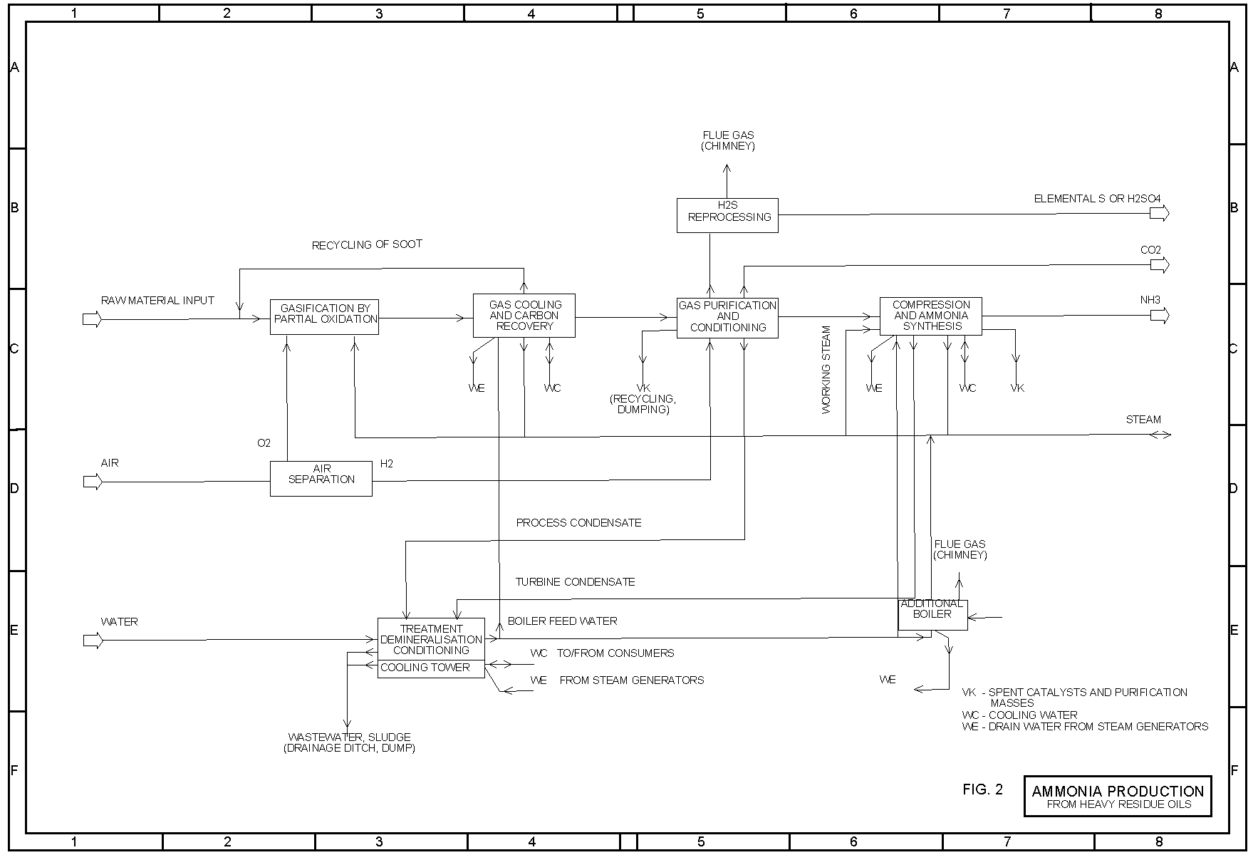 Only wastewater from the demineralisation plant and blow-down water from the cooling water circuit are continuously formed; they must be treated as described in section 2.1.1. The precious metal catalyst for the removal of residual oxygen from the synthesis gas is only replaced at intervals of several years and can be returned to the manufacturer for reprocessing.