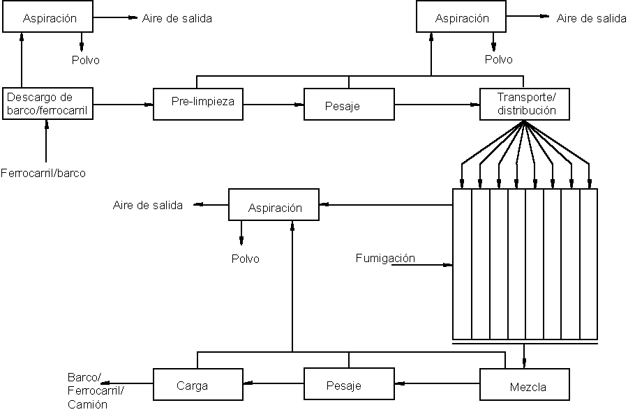Figura 1 - Diagrama de un sistema de silos en puertos y para carga y descarga