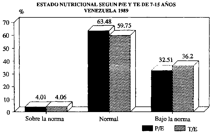 GRAFICO 4-1- ESTADO NUTRICIONAL SEGUN P/E Y TE DE 7-15 AÑOS VENEZUELA 1989