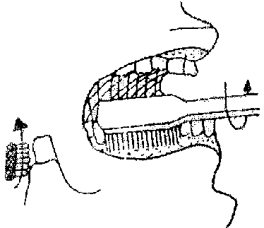 Luego se desliza el cepillo hacia arriba o hacia abajo de manera que las cerdas "barran" las encías.