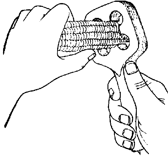 Máquina desgranadora manual de madera: El modelo mostrado en el dibujo fue desarrollado por el Instituto de Productos Tropicales (Tropical Products Institute) y produce más o menos 80 kg/hora. (Los diseños son disponibles por medio de la Oficina Para la Colección y el Intercambio de Información.) Otros tipos de desgranadores manuales son disponibles comercialmente. Las mazorcas tienen que ser descacaradas primero.