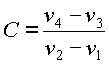 Coeficiente de restitución: Dos cuerpos moviéndose en la misma línea recta, con velocidades v1 y v2 respectivamente, chocan y después del impacto se mueve] a velocidades v3 y v4. El coeficiente de restitución es