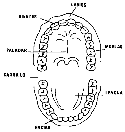 Ayude a los niños a examinar sus bocas, a encontrar cada parte e identificar su función.