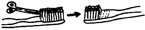 Es importante que el cepillo sea del correcto tamaño para la boca del niño. Es imposible cepillarse bien la boca con un cepillo demasiado grande. Para hacer más pequeño un cepillo grande, sacar o cortar las cerdas así: