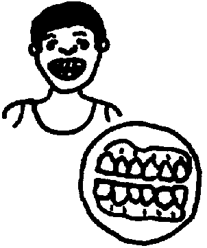 a. En este dibujo hay un niño feliz y sano. Se llama Juan. En el círculo podemos ver adentro de la boca de Juan. Tiene dentadura completa y bonita.