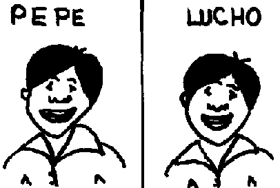 Voy a contarles la historia de dos hermanos Pepe y Lucho. (Ahora, escoja a unos 2 chicos, el uno para representar Pepe y el otro Lucho. Los niños deben ir al frente de la clase). Qué pueden Uds. observar de. estos hermanos? ¿Como son? . . . ¡Idénticos! ¡Igualitos! Son gemelos. Tienen los mismos ojos, pelo igual, boca igual, todo idéntico. . . hasta la ropa igual. A Pepe y Lucho les gusta confundir a su familia y sus amigos. Pero a pesar de que se parecen tanto, hay una manera en que sus amigos y su familia pueden distinguirles. Alguien tiene una idea como? . . . Al hacerles sonreir o escucharles hablar, ellos saben inmediatamente cual es Pepe y cual es Lucho.