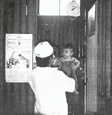 SANICHA GLORIA MURAYARI SACANDO GOTA GRUESA A PACIENTE DURANTE LA SUPERVISIÓN QUE REALIZARON AL PUESTO DE SALUD DE SAPUENA, LA ENFERMERA ELDA ZAMORA DEL C.S. REQUENA MIRA ATENTAMENTE.