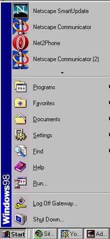 the Start menu. The Start menu