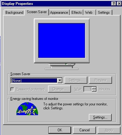 boxes; the current choice is Screen Saver.