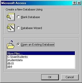 In the diag. above the choice opening an existing database