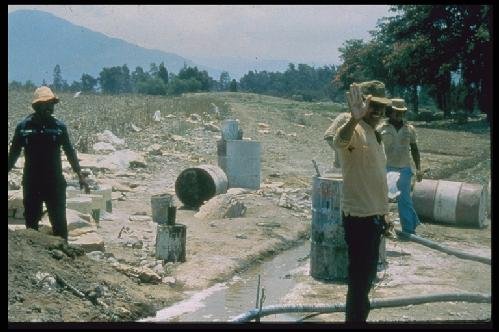 Siphoning pesticide from large drum for use