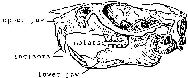 Rodents are characterised by their teeth. They have a pair of incisor teeth in the upper and lower jaws, separated from the molars by a large gap (diastema).