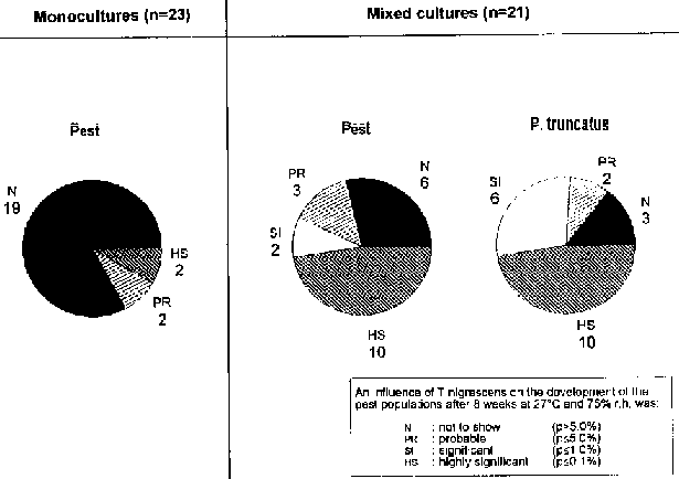 T. nigrescens multiplied better in many mixed cultures than in pure P. truncatus populations of a comparable size. REES (1987) and LELIVELDT (1990) were also able to observe a high rate of reproduction for the predator in these kinds of mixed cultures.