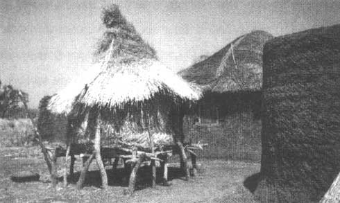 Annual maintenance of storage structures includes removing zanamats and poles, replastering the store and re-roofing. About 69% of the 150 farmers interviewed claim that they clean and repair their structures before each storage season. Chemical treatments or special preparations for the wood and grass used are rarely undertaken. In some cases the wood is heat treated and the poles are put into fire and dried to make them more firm. But the majority of farmers choose firm and very dry wood for their structures as a prerequisite for proper storage management (MOFA-GTZ, 1994).