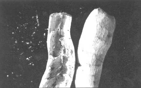 Chips from 30 farm and station storage structures, were drawn each month, and samples were immediately checked visually on the spot and then sealed in plastic bags for further analysis in the laboratory. The samples of 20 dried chips weighed approximately 1200 - 2400 g. Every sample was analysed for moisture content, weight, inner and outer volume, visual damage, and number and species of insects. Weight losses were corrected for moisture content changes. Chips were separated into four categories: undamaged, insect damage, mould damage and rodent damage. During the monthly visits, the storage structures and the stored produce were carefully checked and notes were taken on the laboratory sheets. The analysis of weight losses of dried chips was performed in the same manner as under controlled conditions, so that the costs, quality and precision of the methods could be compared (see section 3).