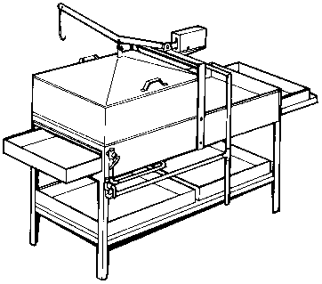 This machine comprises a drying bin, and a heating chamber powered by an electric fan which requires motors, 0.55kW (0.74hp) 1500rpm single-phase. The heaters require 8kW. Capacity: 1000kg per charge. Dimensions: 930 x 350 x 250cm.