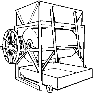 A rice dryer, based on an IRRI design, uses a 3hp (2.2kW) petrol engine or a 1.5kW (2hp) motor to drive a 47cm diameter vane-axial type fan and to supplement heating. Primary heat is provided by a rice-hull furnace or kerosene burner. There is an automatic safety burner shut-off mechanism. The weight (without engine) of the burner and fan is 40kg. Airflow is 1800 cfm at 2200 rpm, with a static pressure of 20mm water. Temperature: 43°C. Fuel consumption: 0.75 litres per hour petrol + 2.0 litres per hour kerosene or 3.4kg/h rice-hull. Drying bin dimensions: Length 277cm, width 190cm, height 92cm. Drying rate 23% moisture (w.b.) paddy (1 tonne) to 14% in 5-6 hours.