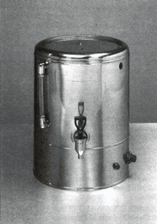 This prototype equipment has been tested successfully for pasteurizing fruit juice. It consists of a juice tank which feeds juice via a plastic pipe to a stainless steel coil. The coil is immersed in hot oil inside an insulated heater tank. The flow rate of juice is controlled by a valve to achieve the correct pasteurization conditions. It operates continuously at 30-120 litres per hour. Coil size: 15cm diameter made from 2.54cm diameter 18-gauge tube in five sections (bolted together and easily dismantled for cleaning).