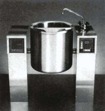 These tilting pans are directly steam-heated and jacketed. Capacity: 80, 120 litres.
